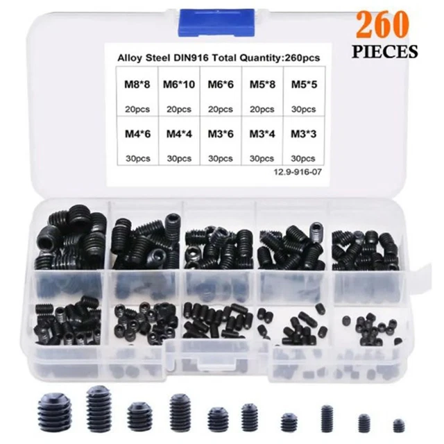 Glarks 200-Piece M3 M4 M5 M6 M8 Allen Socket Set Screw Assortment Kit ...