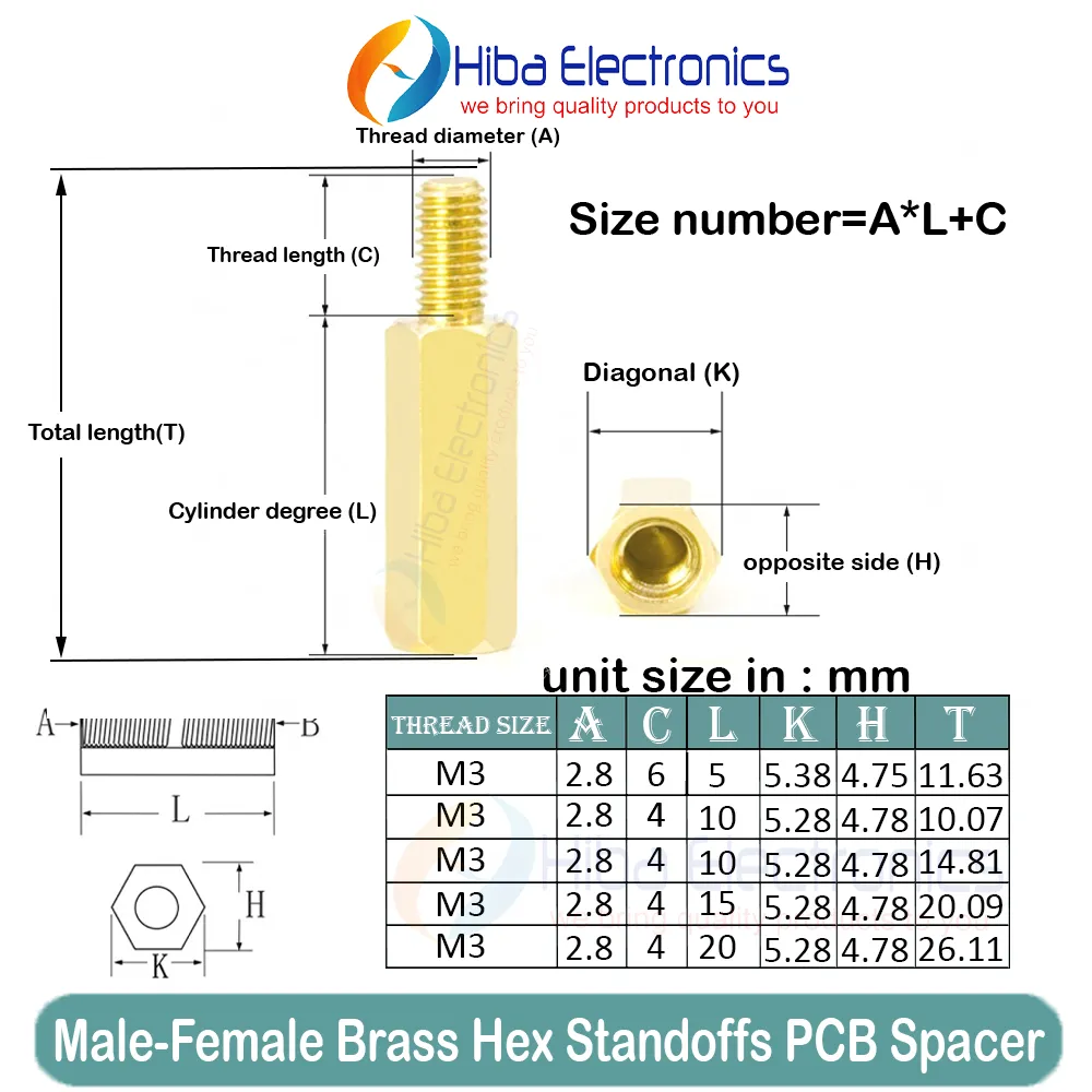 M3 Thread (5/10/15/20) mm+ 4mm Male To Female Brass Hex P C B Standoff ...