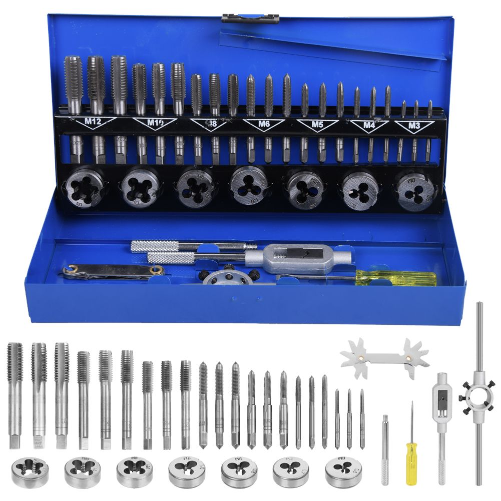 Metric Tap and Die Kit M3 M4 M5 M6 M8 M10 M12 Thread Cutter Tool Wrenc ...