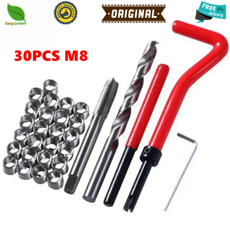 30Pcs M8 Tap Wrench Cutter Repair Kit Hand Tools Red Thread Wire Insert ...