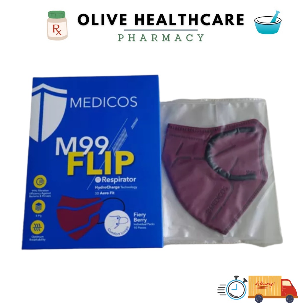 Medicos M99 Flip Respirator 5-Ply Face Mask 10's/Box (Fiery Berry ...