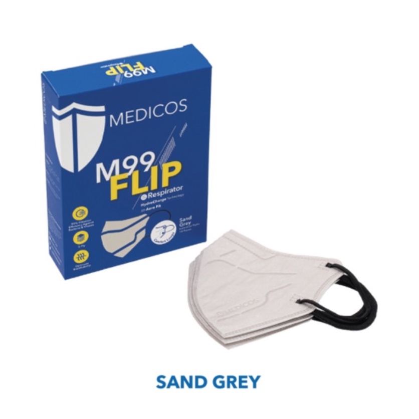 MEDICOS 5-ply M99 FLIP Lite Surgical Face Mask - Adult (Sand Grey) [10 ...