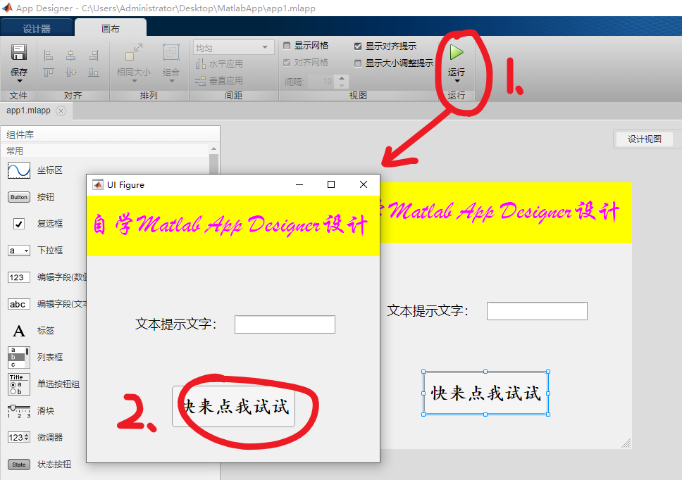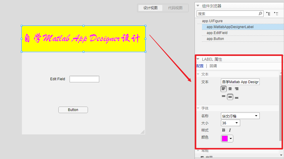 Matlab App Designer自学笔记(一):Button控件、Lable控件及文本编辑控件_matlab的buttonpushed不 ...