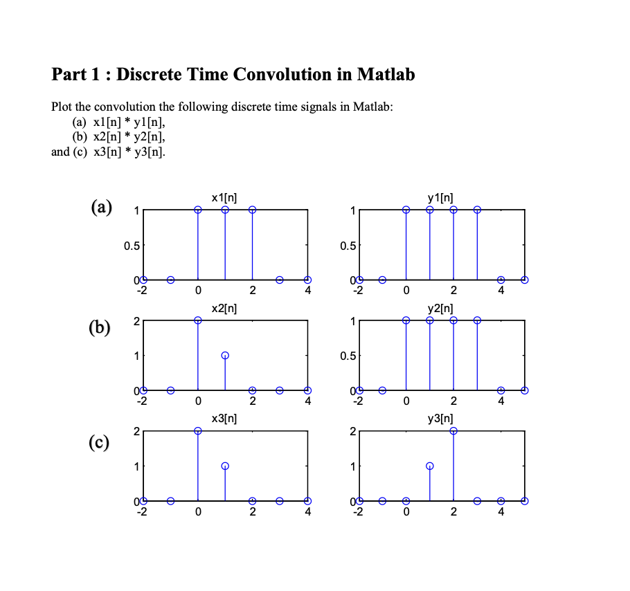 Solved Part 1 : Discrete Time Convolution in Matlab Plot the | Chegg.com