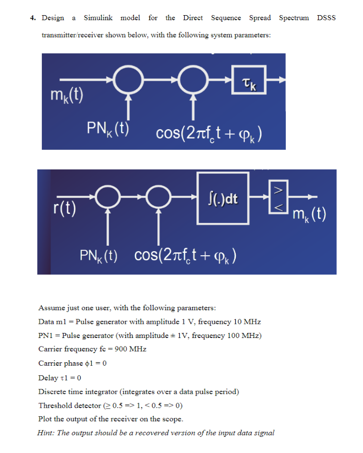 4. Design a Simulink model for the Direct Sequence | Chegg.com