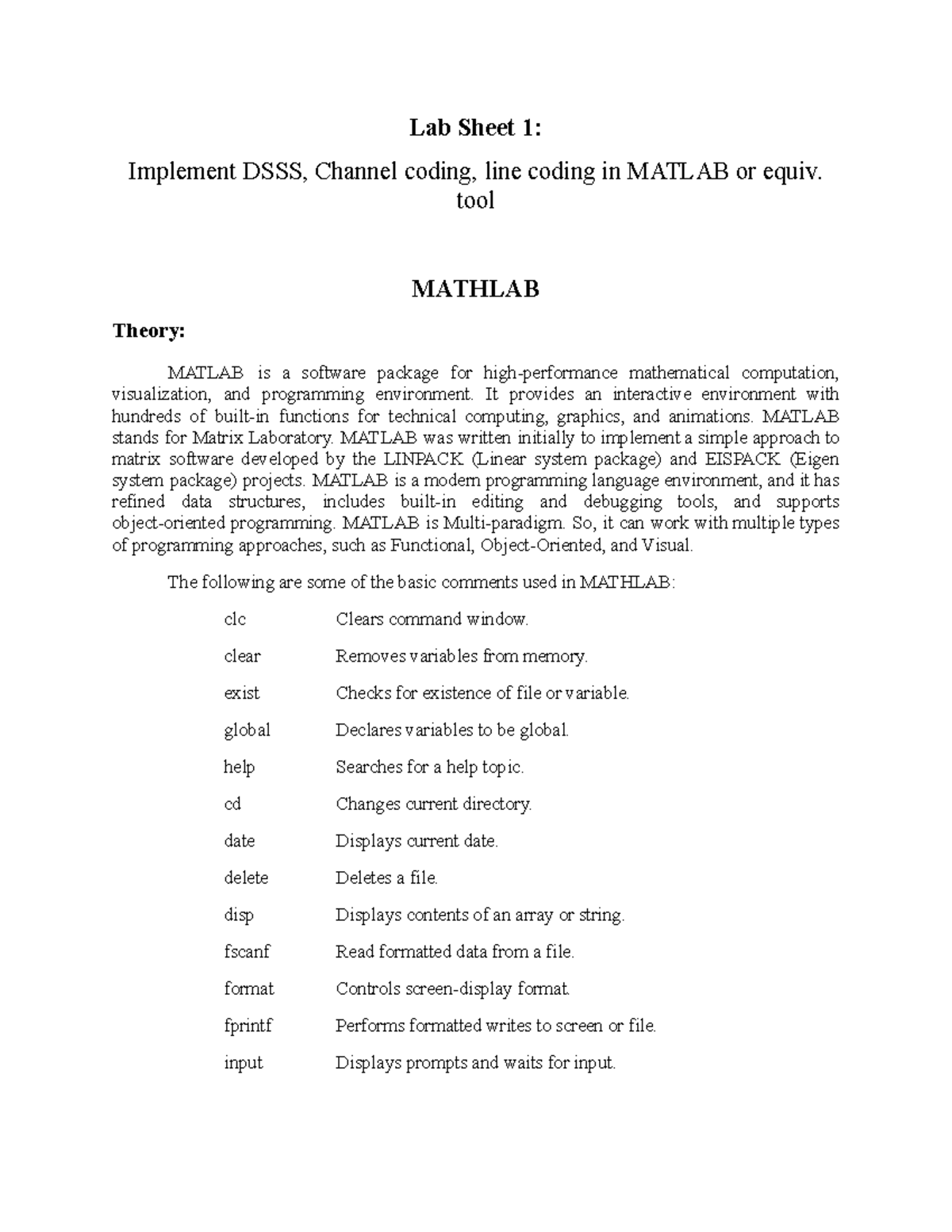 Lab Sheet sample - nothing - Lab Sheet 1: Implement DSSS, Channel ...