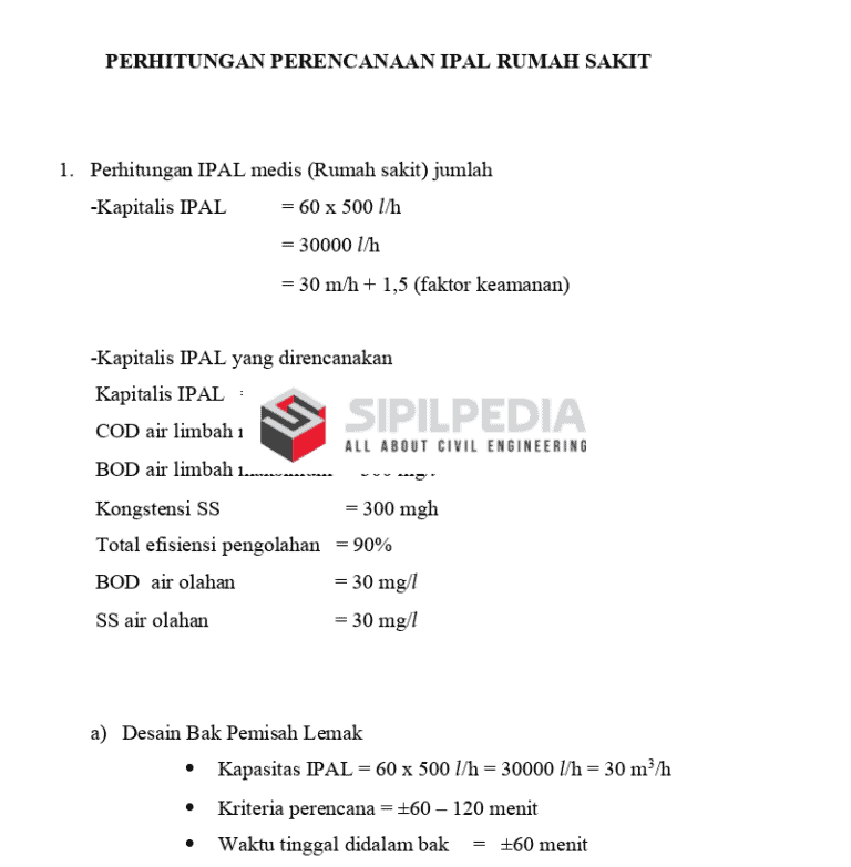 PERHITUNGAN PERENCANAAN IPAL RUMAH SAKIT | Sipilpedia
