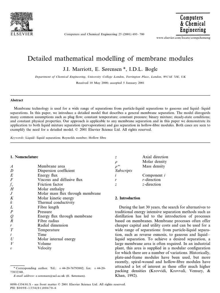 Detailed Mathematical Modelling of Membrane Modules | PDF