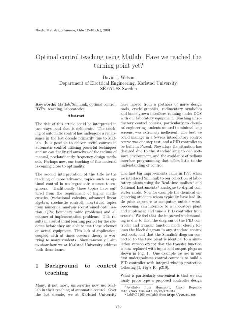 Optimal Control Teaching with Matlab | PDF | Computers | Technology ...