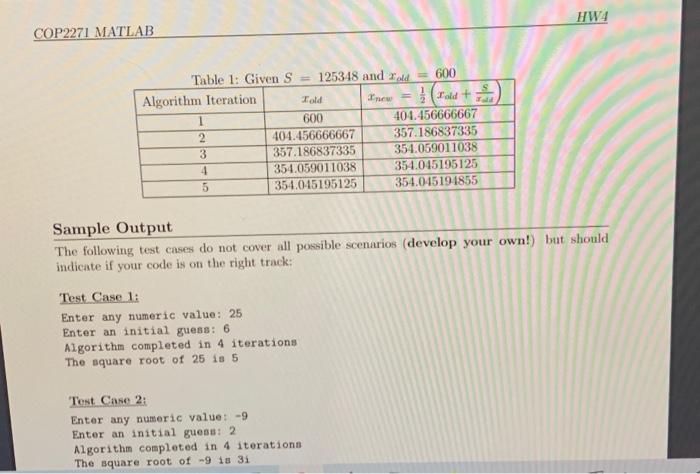Solved HW4 COP2271 MATLAB Square Root Algorithm Key | Chegg.com