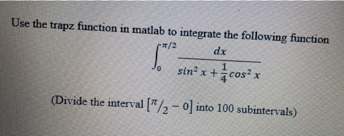 Solved Use the trapz function in matlab to integrate the | Chegg.com
