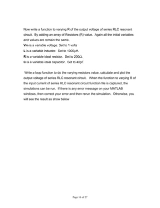 MATLAB SIMULATIONS OF SERIES RESONANT CIRCUIT | DOC