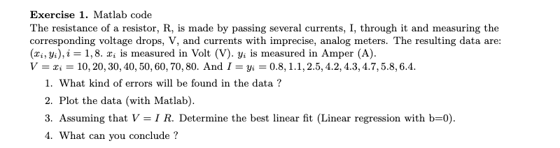 Solved Exercise 1. Matlab code The resistance of a resistor, | Chegg.com