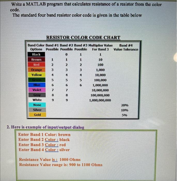 Solved find the resistor value in matlab plzYour program | Chegg.com