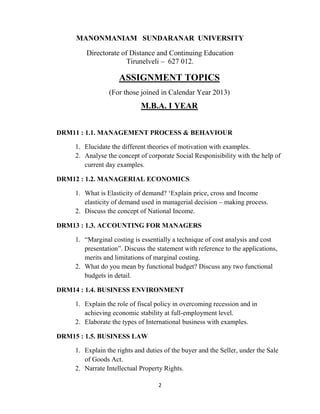 Mba assignment topics 2013 | PDF | Business Administration | Business