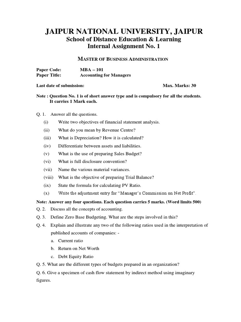MBA I YEAR ASSIGNMENT QUESTION PAPERS (1) - For Submission | PDF ...