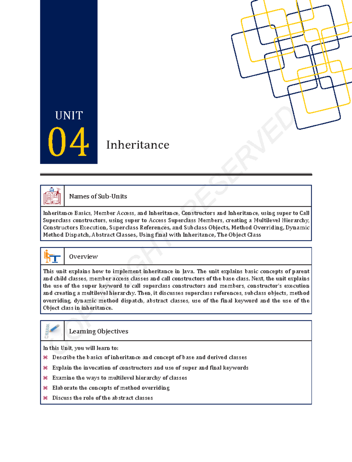 MCA Java Programming 04 - Inheritance Names of Sub-Units Inheritance ...