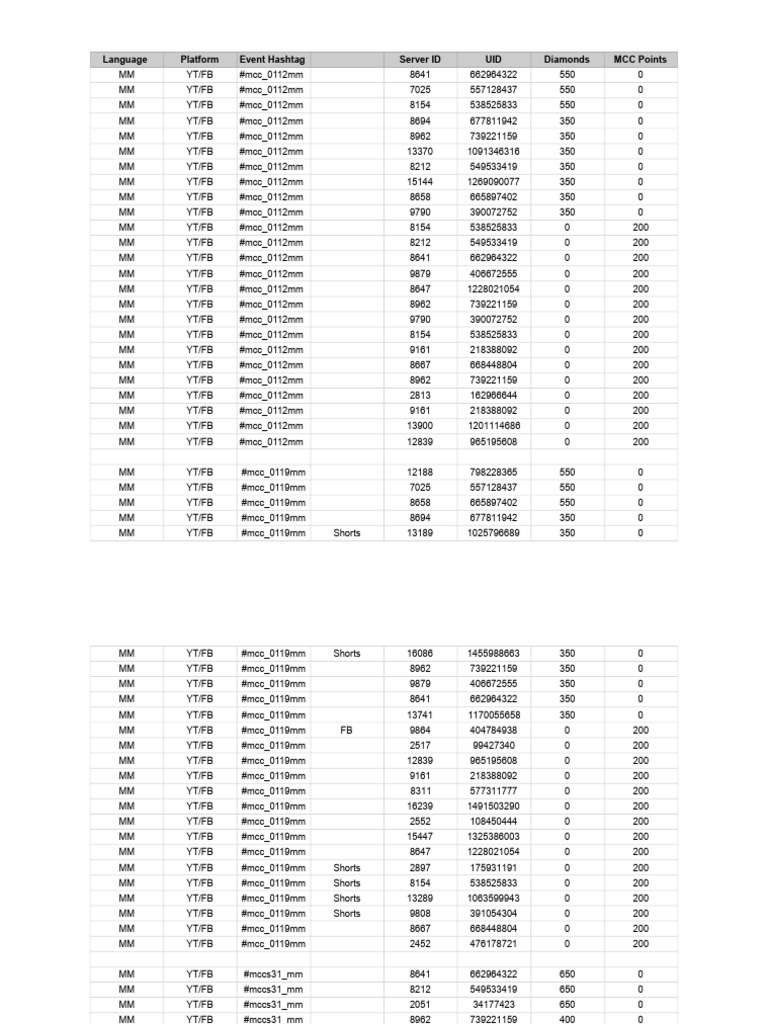 MCC Event Data Overview | PDF | Computers | Technology & Engineering