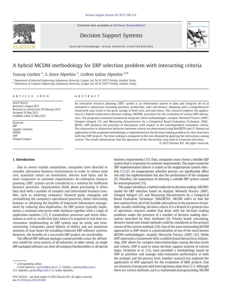 A Hybrid MCDM Methodology For ERP Select | PDF | Enterprise Resource ...