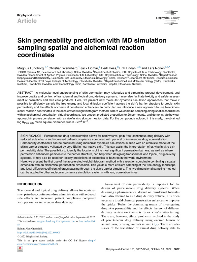 Skin Permeability Prediction With MD Simulation Sampling SP 2022 ...