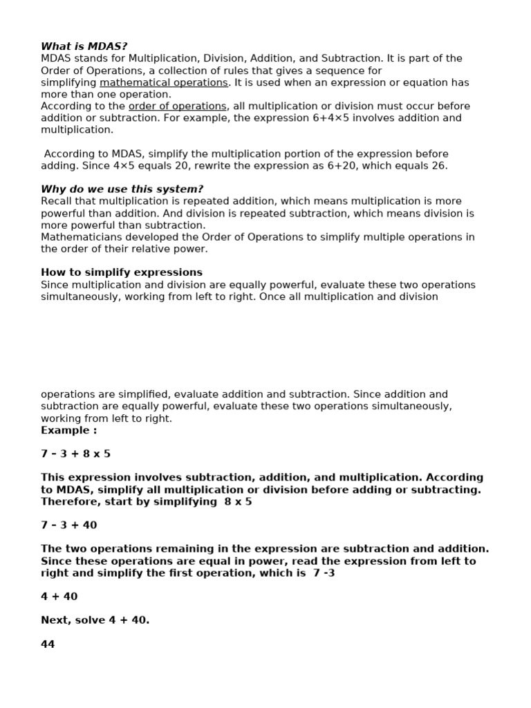 Understanding MDAS in Math Operations | PDF