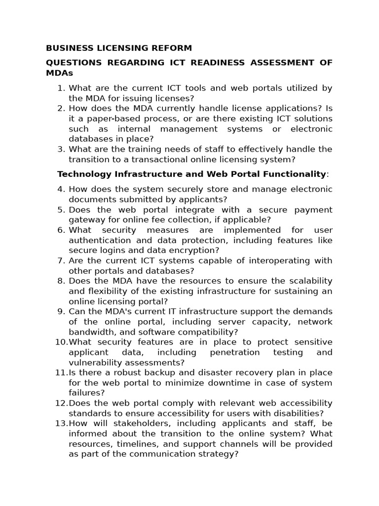 QUESTIONS REGARDING ICT READINESS ASSESSMENT OF MDAs | PDF