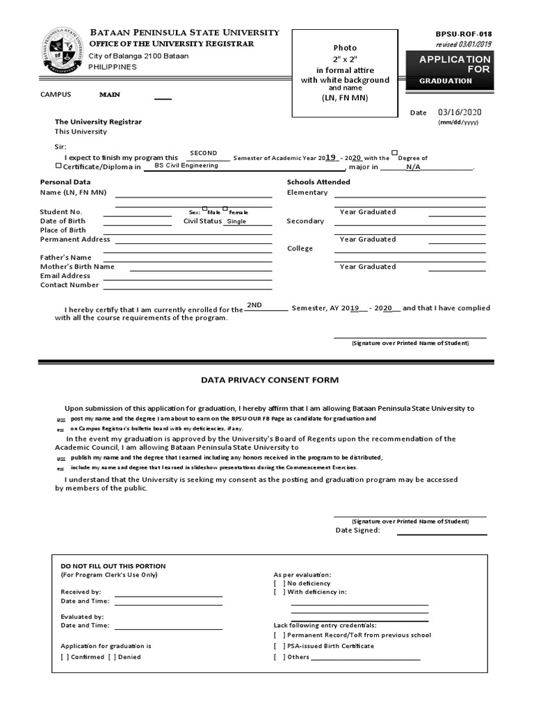 Graduation Application Form Sample | PDF