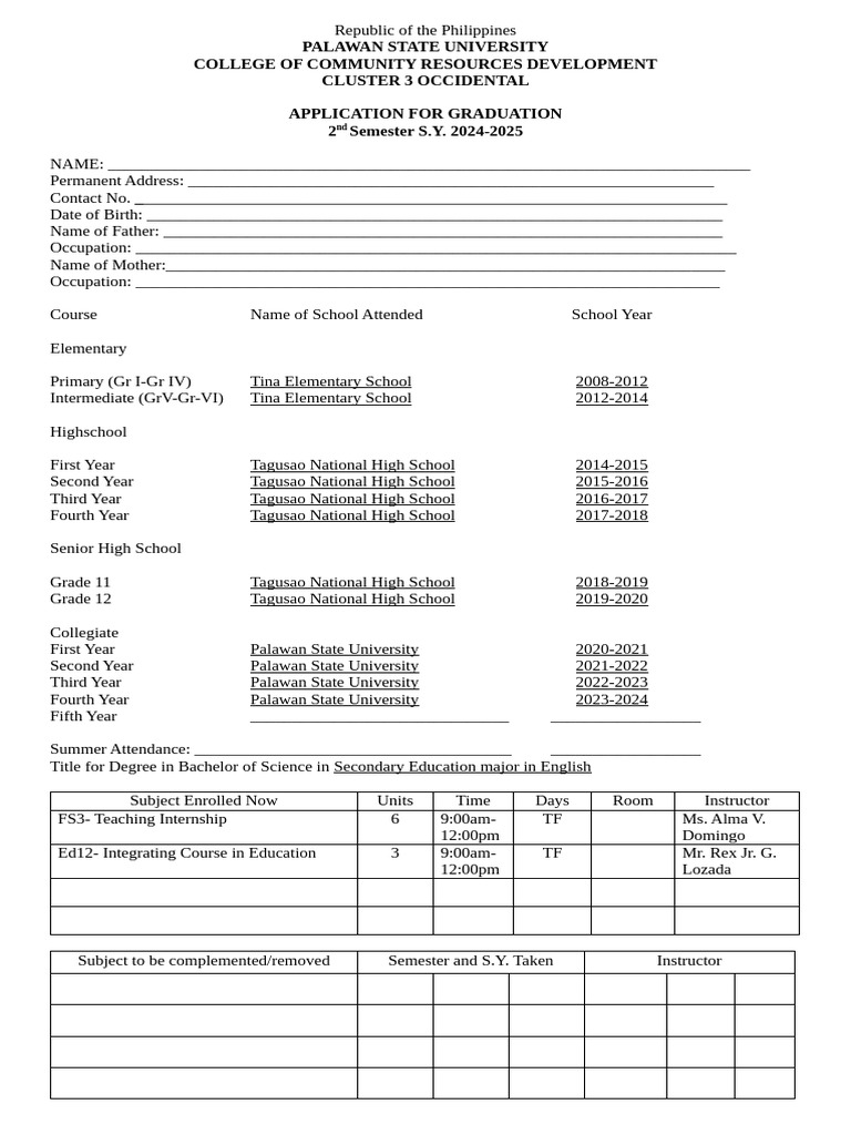 Application For Graduation | PDF | Curriculum | Language Education