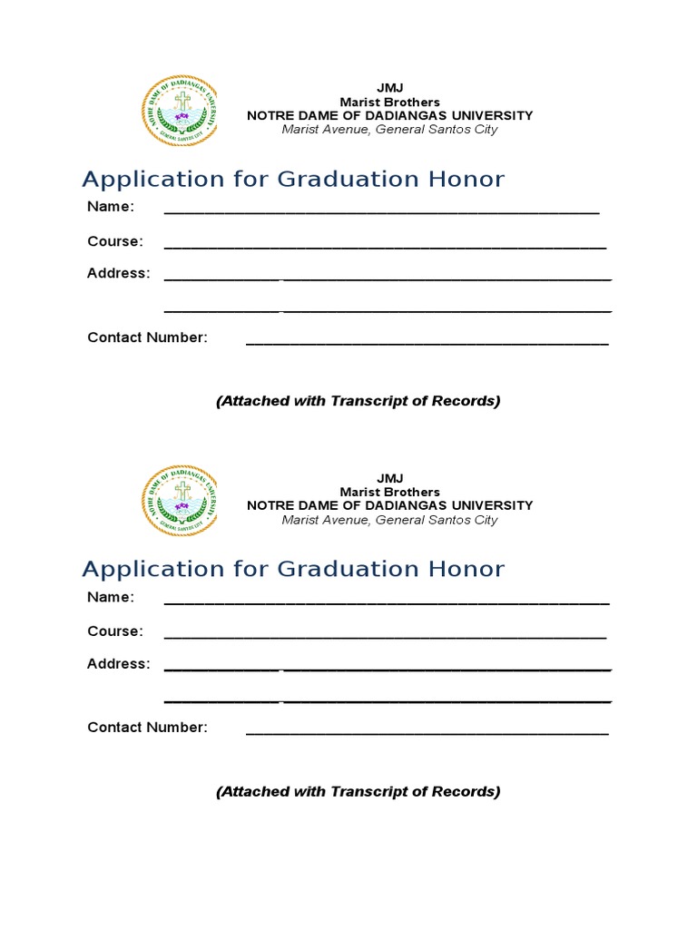 Application For Graduation Honor | PDF