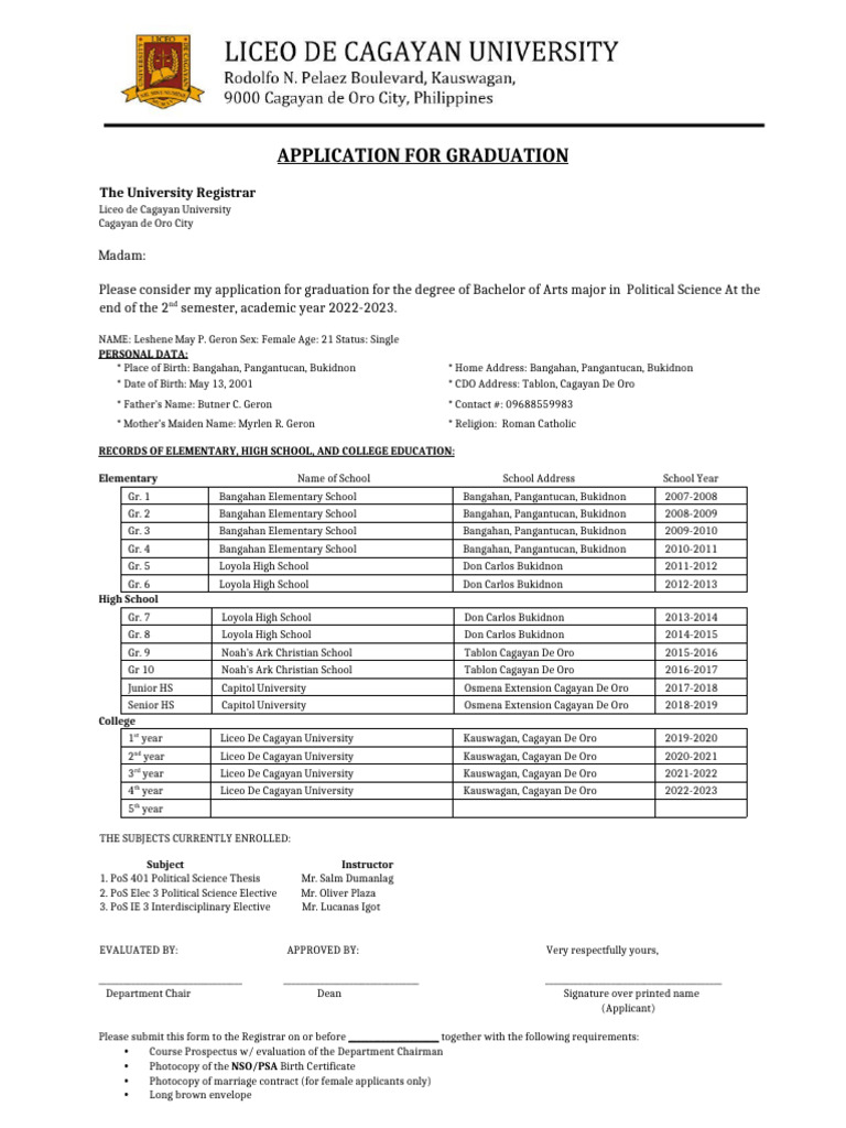 Application For Graduation 2023 | PDF