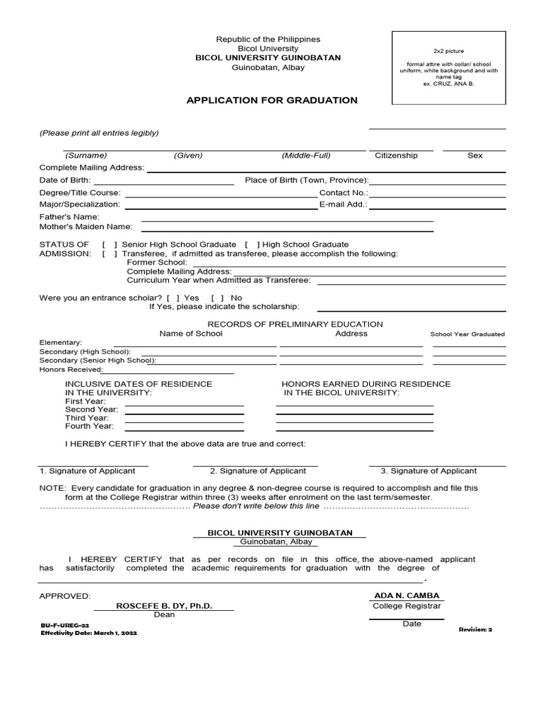 Application For Graduation - Edited 2 22 2022 1 | PDF | Thesis ...