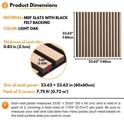 Pack of 2 Wooden Acoustic Wall Panels (60x60cm) with Felt Backing ...