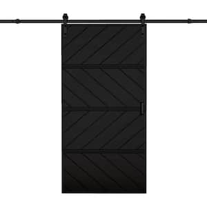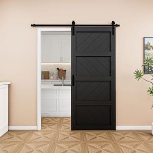 EH PUERTA 60 in. x 84 in. 4-Panel Wave Pattern Black Finished MDF ...