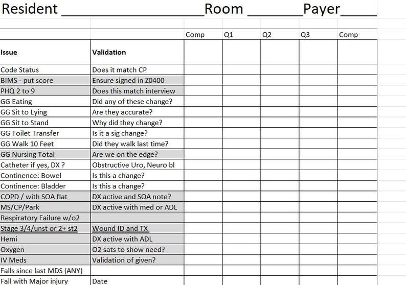 Skilled Nursing MDS Tool - Spreadsheet Tool With the Most Valuable ...