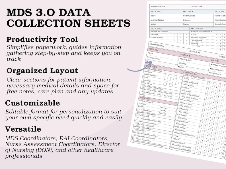 MDS Assessment Data Collection Printable Worksheet for MDS 3.0 ...