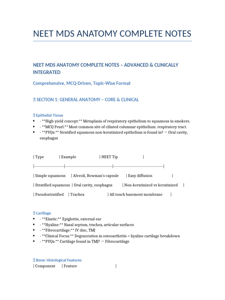 Neet Mds Anatomy Notes Final | PDF