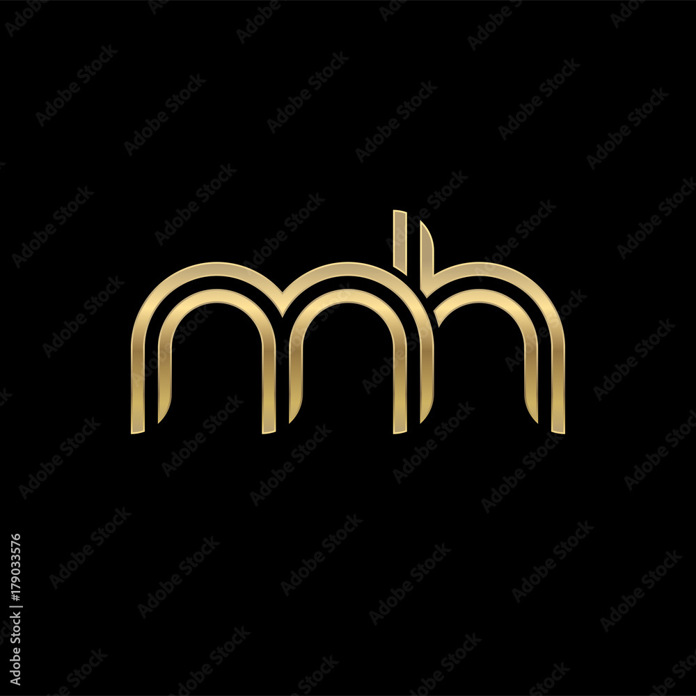 Initial lowercase letter mh, linked outline rounded logo, elegant ...