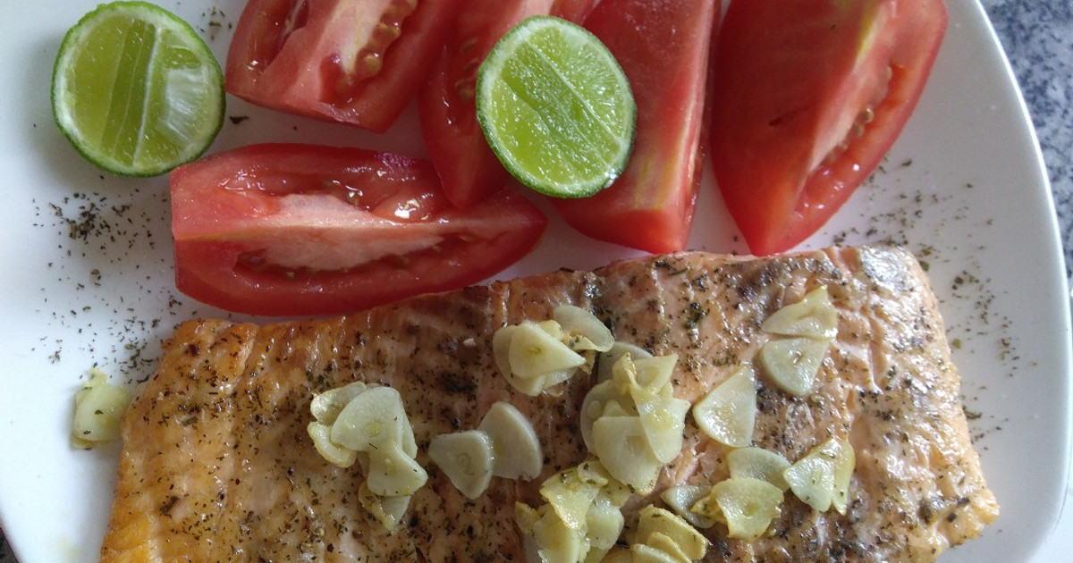 Filete De Salmón Sellado En Láminas De Ajo Adobado Con Hierbas De Mi ...