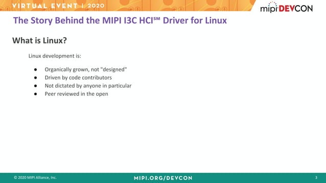 MIPI DevCon 2020 | The Story Behind the MIPI I3C HCI Driver for Linux | PDF