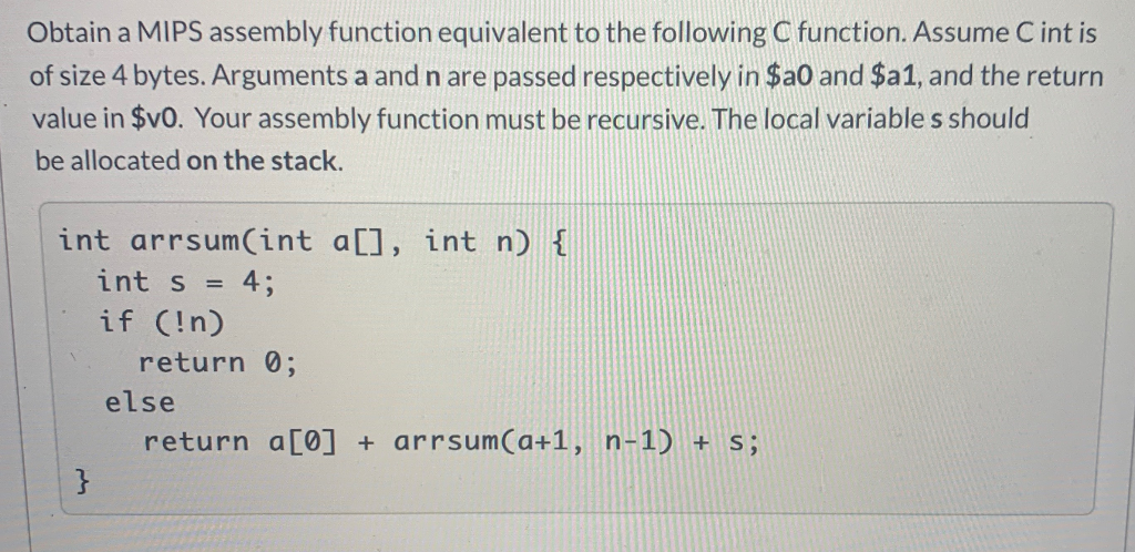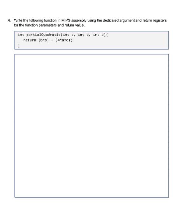 Solved 4. Write the following function in MIPS assembly | Chegg.com