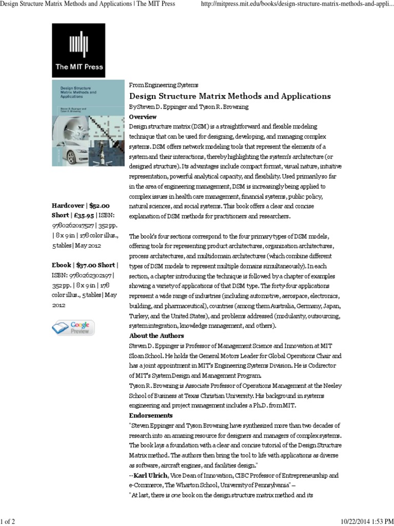 Design Structure Matrix Methods and Applications - The MIT Press | PDF ...