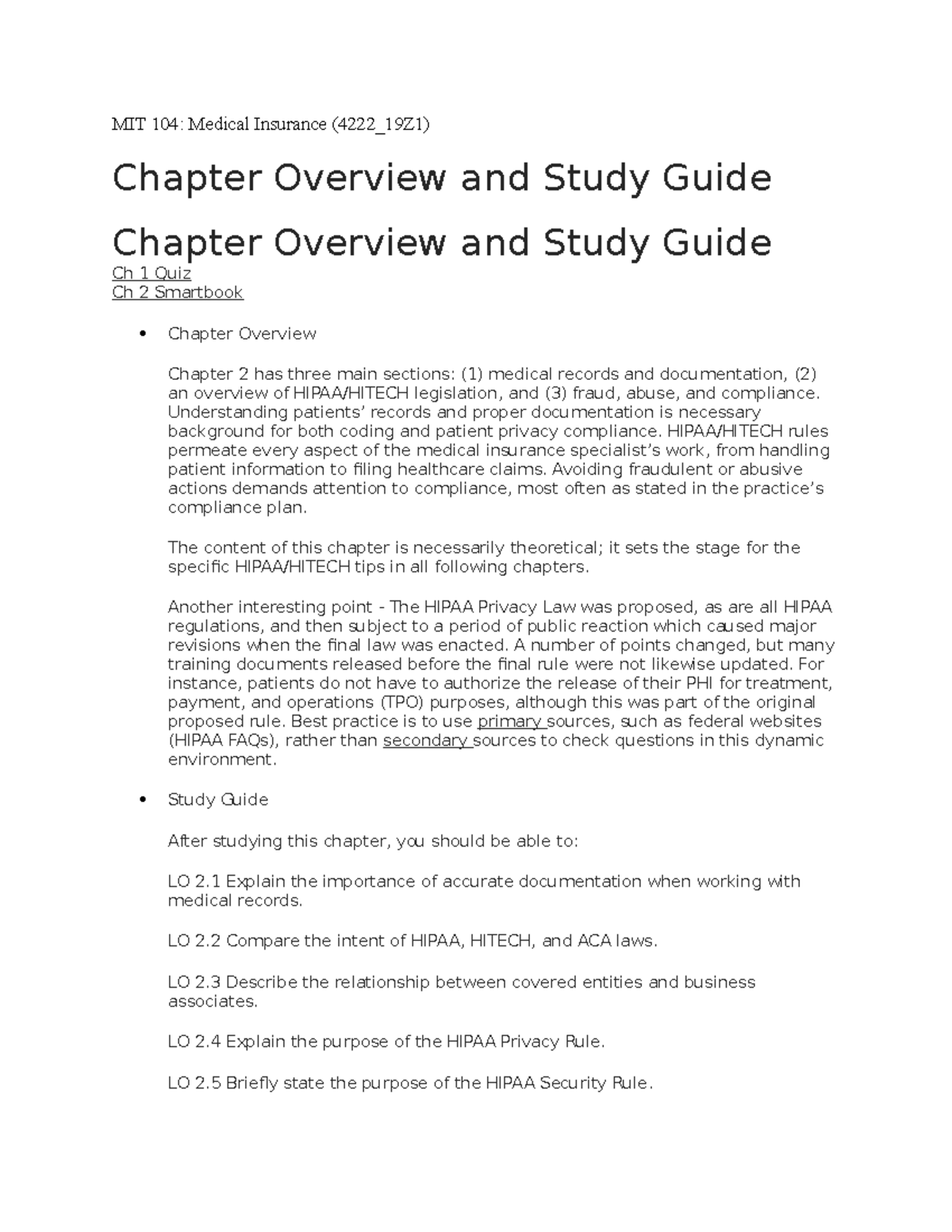 MIT 104 1 - MIT 104 1 - MIT 104: Medical Insurance (4222_19Z1) Chapter ...