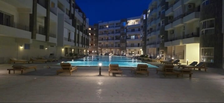 Studio mit Blick auf einen Swimmingpool in der Nähe des Flughafens ...
