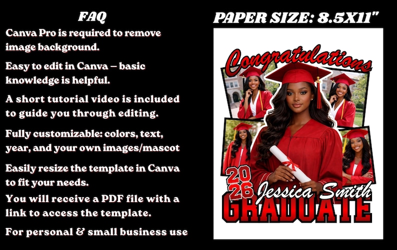 Red Graduation 2026 Fan Canva bearbeitbare Vorlage, Graduation Paddle ...