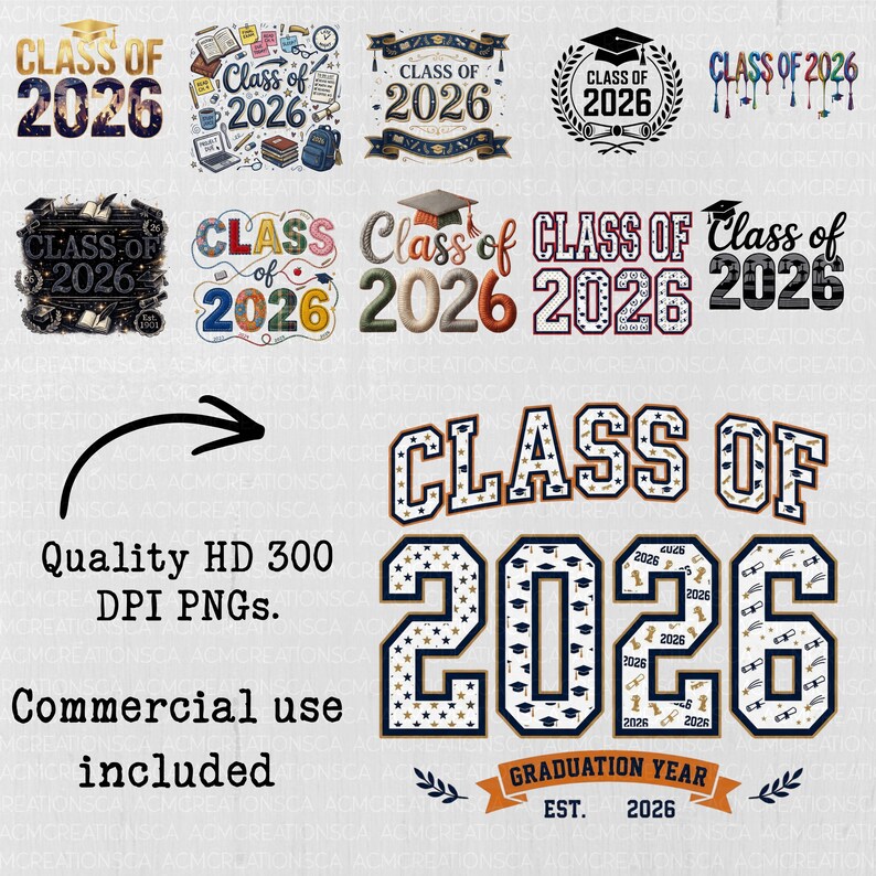 Abschluss-Bundle PNG | Jahrgang 2026 | Grad Bundle | Senior PNG-Bundle ...