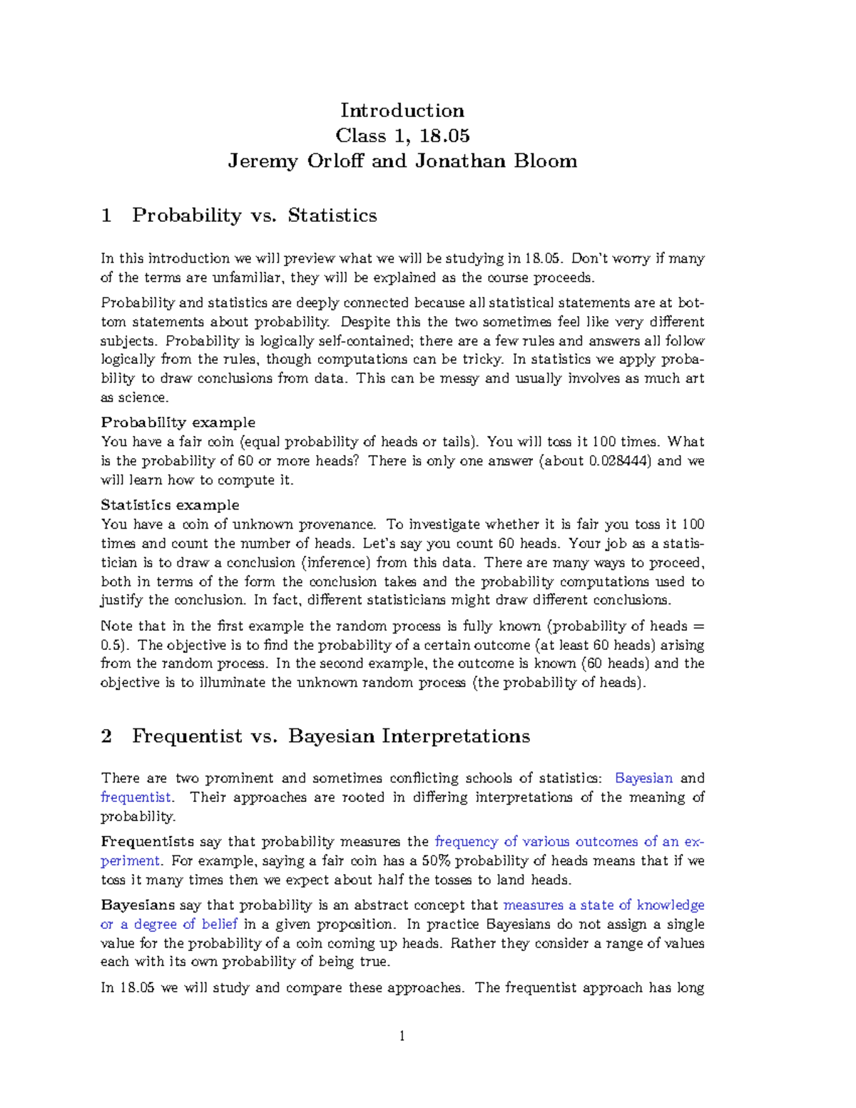 Mit 18.05 S22: Intro to Probability & Statistics - Class 1 Notes - Studocu
