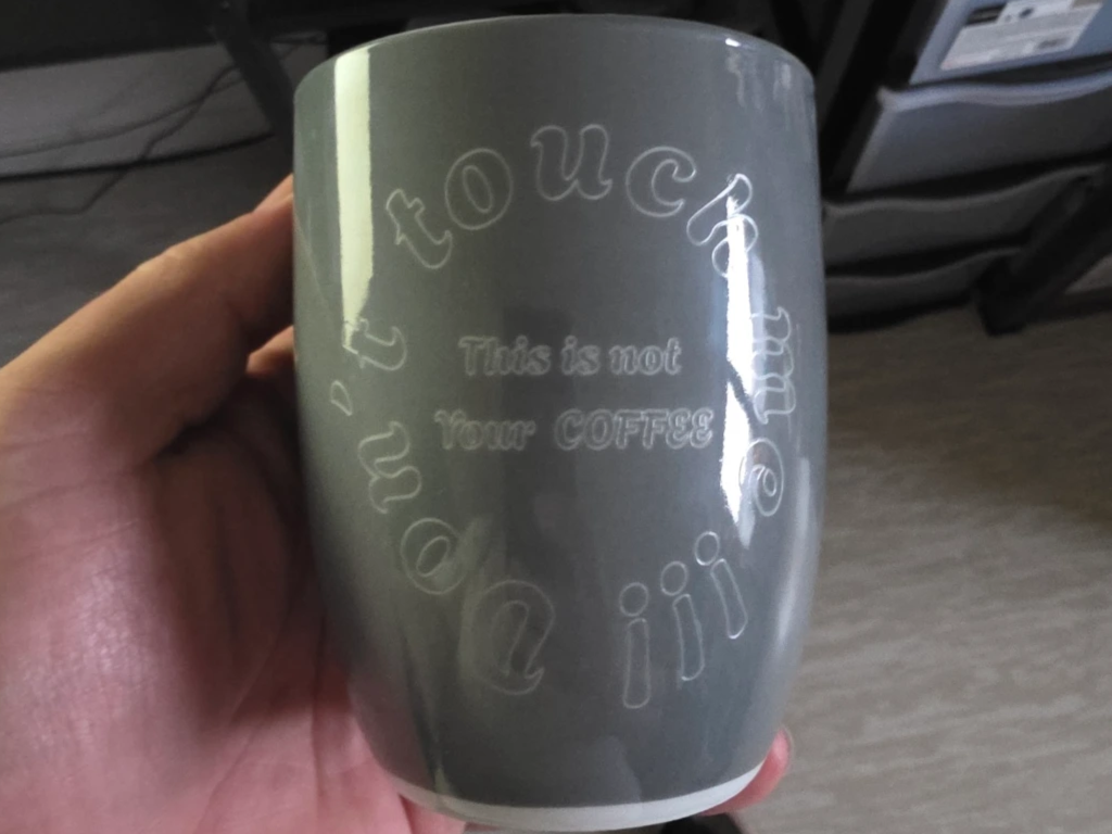 Graue Tasse mit lustigem Spruch Don't touch me this is not your coffee ...