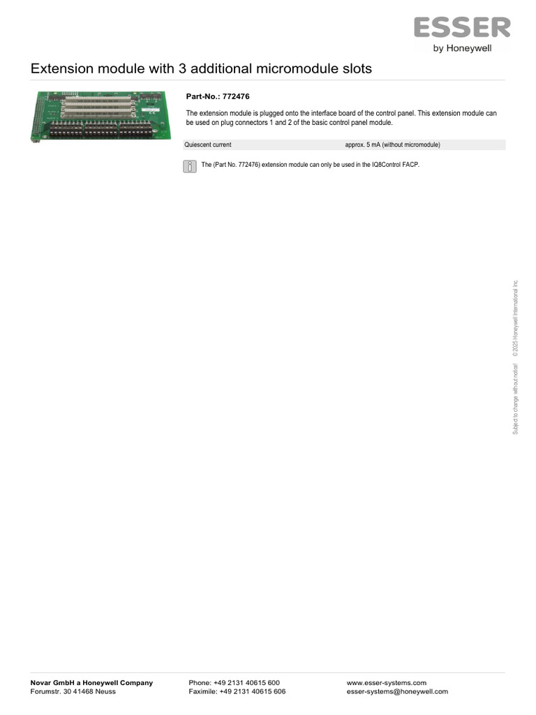 Esser Extension Module 772476 Details | PDF