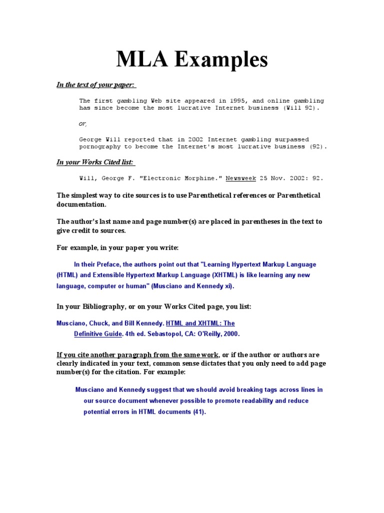 Examples of MLA Referencing Style for thesis - Examples of MLA ...