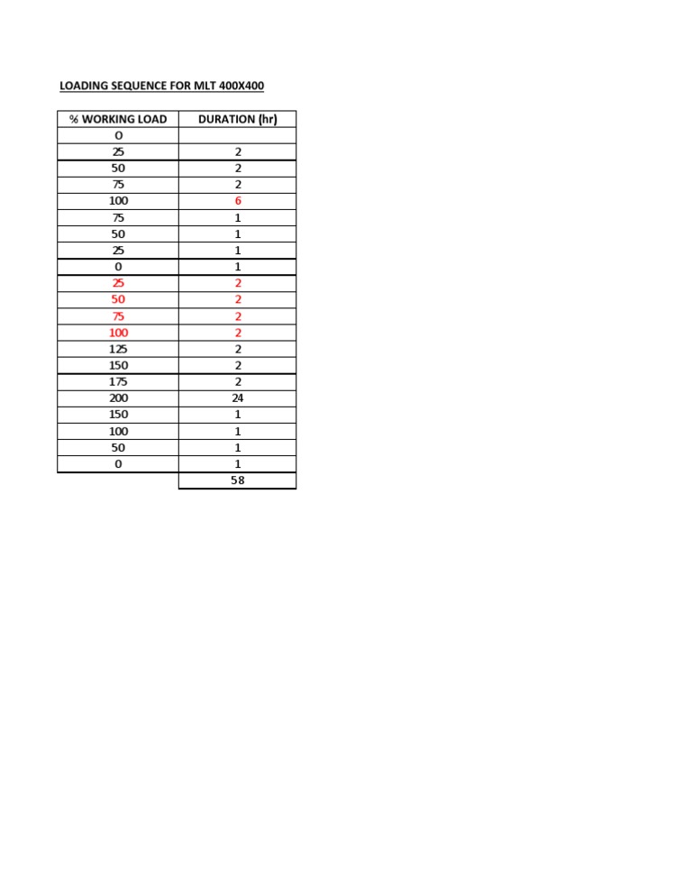 Loading Sequence For MLT 400X400 % Working Load Duration (HR) | PDF ...